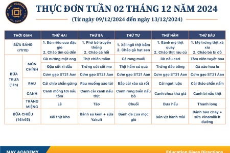 Thực đơn từ ngày 5/5/2025 đến ngày 9/5/2025
